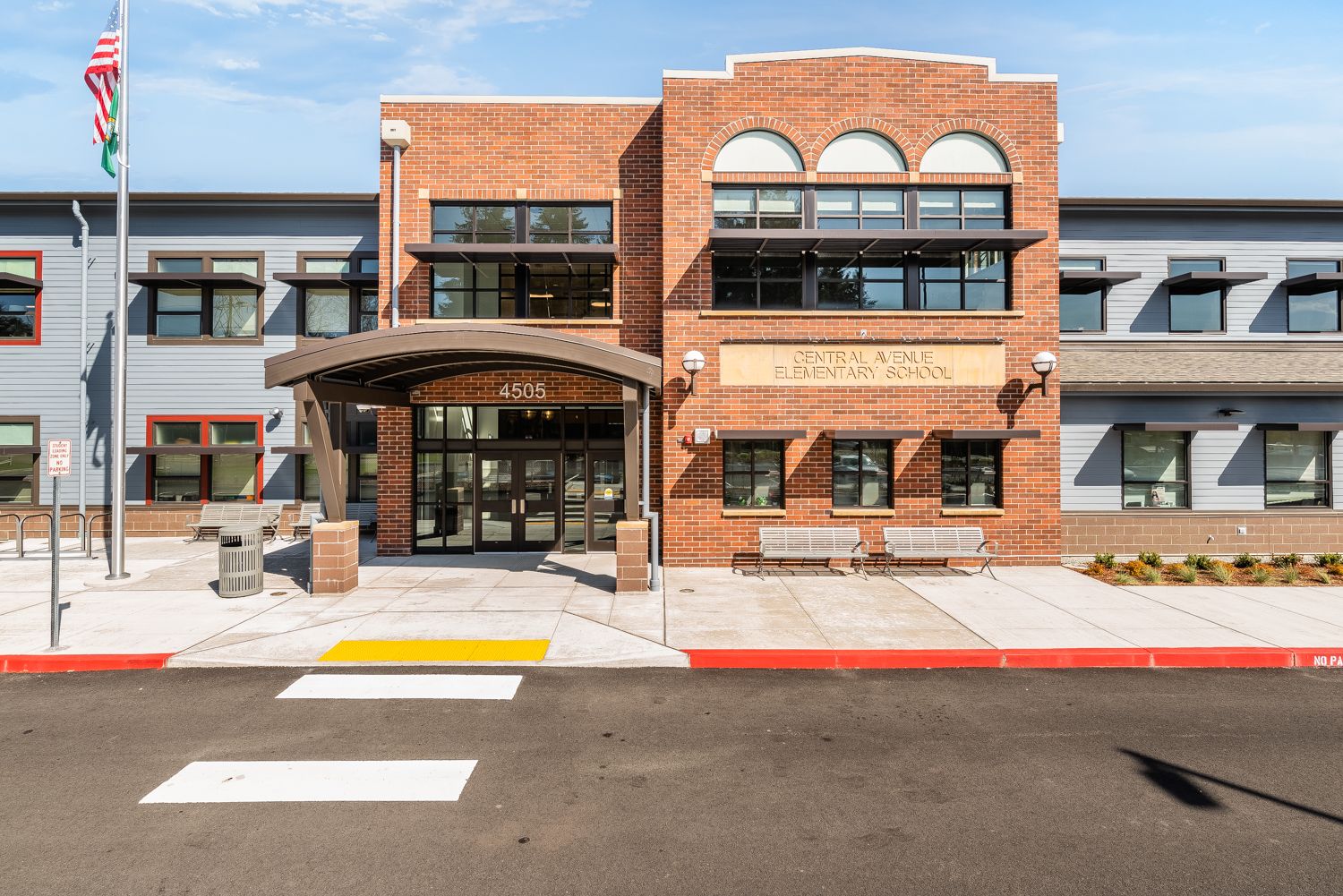 Central Avenue Elementary School – A Modern Take on Historical American Masonry Words: Jake SulyaPhotos: WARFIELD MASONRY LLCCentral Avenue Elementary School is a project that the team here at Warfield Masonry completed in 2021. Located in Midland, Washington, the project involved the demolition and replacement of the original Central Avenue School built in 1949. The original elementary school building consisted of brick masonry materials and included brick masonry arched windows with other intricate brick features. Designed by Erickson McGovern Architects, the new building was created to resemble the 1949 original with a more modernized look. With brick masonry being such a historical building practice, it was only right that the new school was designed with masonry integrated as well. The overall budget for this project was $20,051,000, with the masonry portion accounting for a little over 1% of that total. Partnered with Neely Construction Company as the general contractor, the Central Avenue Elementary School Replacement project is just one of the many projects Franklin-Pierce Public Schools have introduced to replace or modernize their school buildings. The team here at Warfield Masonry was very fortunate to work on this project, and it brings me great joy to highlight it for MASONRY Magazine.The exterior of the new elementary school building consists of a variety of Mutual Materials masonry products. The school’s entrance was built with a blend of “Inca,” “Vintage,” and “Autumn Blend” econ brick accented by the “Natural Gray” Type S Mortar. The exterior wainscot consists of 4” Smooth Face “Deep Plum” CMU veneer with “Natural Gray” Type S Mortar as well. Besides providing aesthetic appeal, the 4” CMU veneer wainscot provides function as a shield for the lower portion of the building envelope. In addition, the econ brick blend on the exterior was also used in the entrance interior with additional brick masonry arches. This project also utilized 8” “Deep Plum” CMU for stair tower and service yard wall construction. The use of 8” CMU , 4” CMU veneer, and econ brick provided value engineering for the project compared to a full standard or modular brick façade. Our team also installed tan/sand-colored precast concrete sills at exterior window locations to offset and accent the red tones of the econ brick. We also set the precast panel etched with “Central Avenue Elementary School” that is displayed on the entrance. The original 1949 building had a similar panel display. An additional feature the building presents is the use of repurposed light fixtures integrated into our masonry wall system, as shown on the entrance exterior and entrance interior. These light fixtures were 82 years old at the time and were saved during demolition of the original building to be given new life in the replacement project.From recycling light fixtures to referencing the original building in design, this project shows a deep appreciation for those in masonry/construction who came before us.One of the challenges we had during the construction phase pertained to the brick arches mentioned previously. On the original 1949 building and others like it, brick arches were constructed to be self-supporting, held together by just brick and mortar. With modern-day seismic requirements being more extensive than older ones, angle irons had to be integrated so the brick masonry arches had extra support. This slowed production in those areas, but the increase in structural stability and building safety was well worth it.Another aspect of this project I wanted to highlight was the community impact the replacement project had. My boss, Ben Warfield, explained to me that community members expressed sadness once the initial demolition of the 1949 building occurred. When you think about it, generations of Pierce County residents attended that school. So, it became an integral part of the community and a place for it grew in community members’ hearts. One thing they especially missed was the masonry, and they were more than happy that the new project incorporated brick masonry like the old one. Community members actually came up to our masons and told them how much they appreciated that the brick was returning! When moments like that happen, you can’t help thinking that what you’re building is bigger than masonry and construction itself. Not only did we build a school, but we brought back a sense of community to those in the area.Additionally, I wanted to highlight that the project was designed to meet the WSSP (Washington Sustainable Schools Protocol). Signed into law in 2005, the WSSP covers efficient material use, energy performance requirements, and environmental quality when constructing schools. The beautiful thing about masonry products is their ability to meet these requirements.The cherry on top for this project was that it won an award after its completion. We entered the project into the MIW (Masonry Institute of Washington) 2023 Excellence in Masonry Awards in the educational category, which is widely perceived as the most prestigious award. Up against 22 other beautiful educational replacement and addition projects, we were unsure how our Central Avenue Elementary School project would place. Much to our joy, we walked home with the Gold Award of Excellence (1st Place)! It was just the second time our organization had entered a project in the MIW Excellence in Masonry Awards, so we were more than happy to come out of it with some hardware. All in all, while winning an award is great, the impact on the community that this project had was the real prize. Like I previously stated, this project was bigger than masonry, and I’m appreciative I get to share its story with those reading. About: Technical Talks