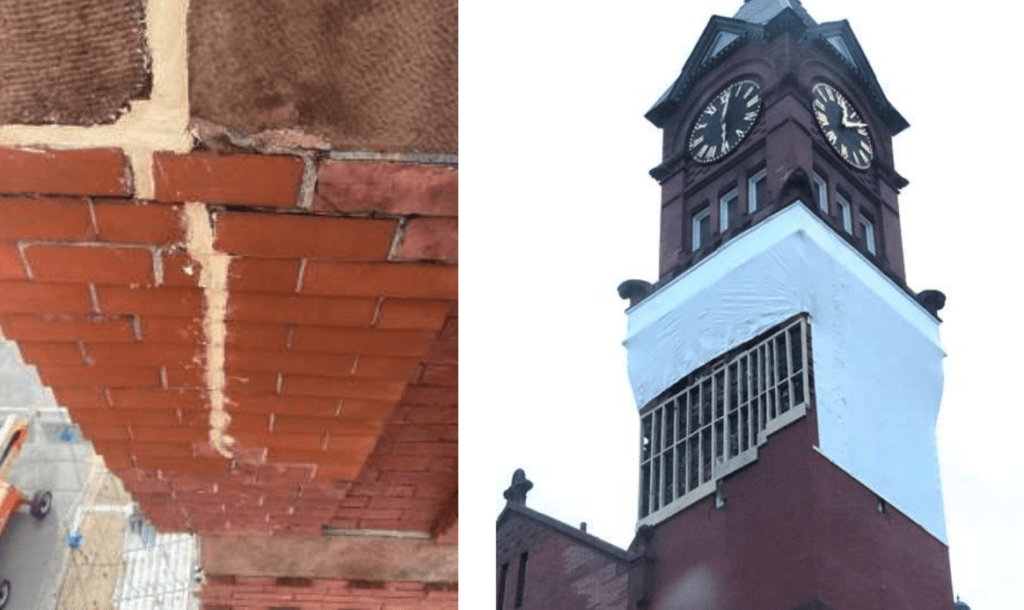 Following the collapse, town officials issued an emergency contract to Legrand Masonry (https://legrandcompanies.com/) to stabilize the clock tower. Legrand’s concerns included: